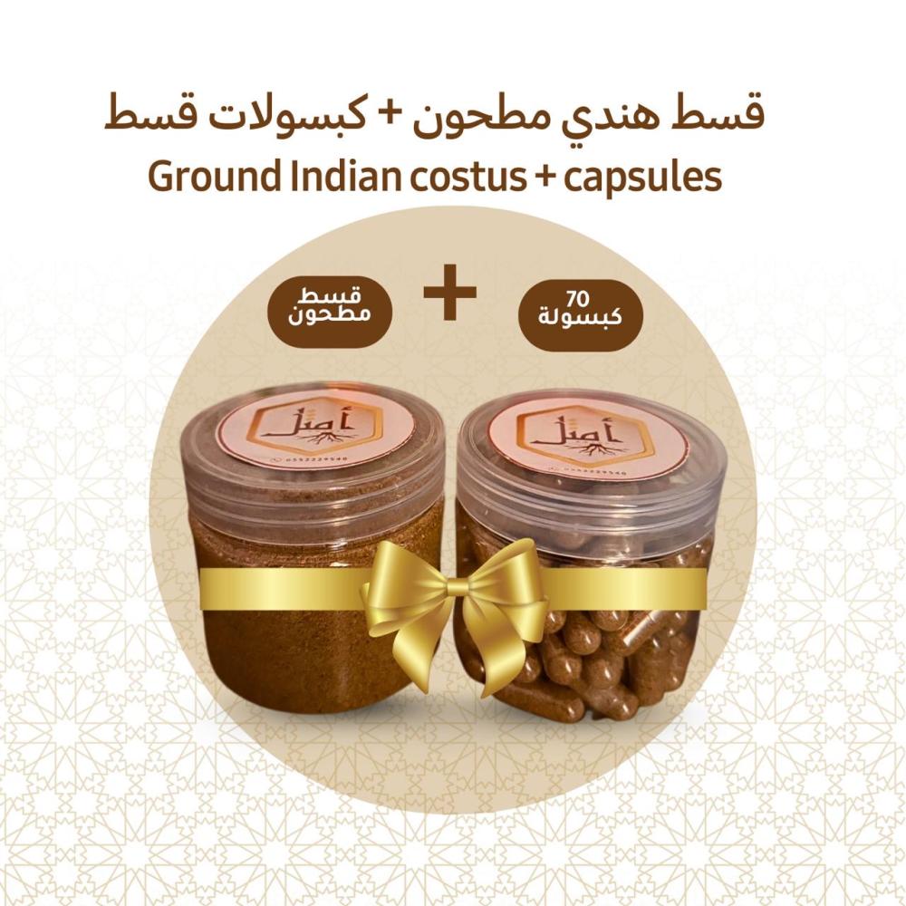 - المنتج: عبوتي قسط هندي مطحون وكبسولات